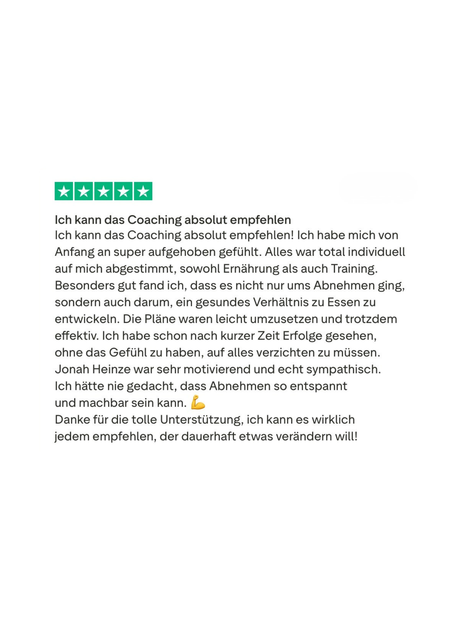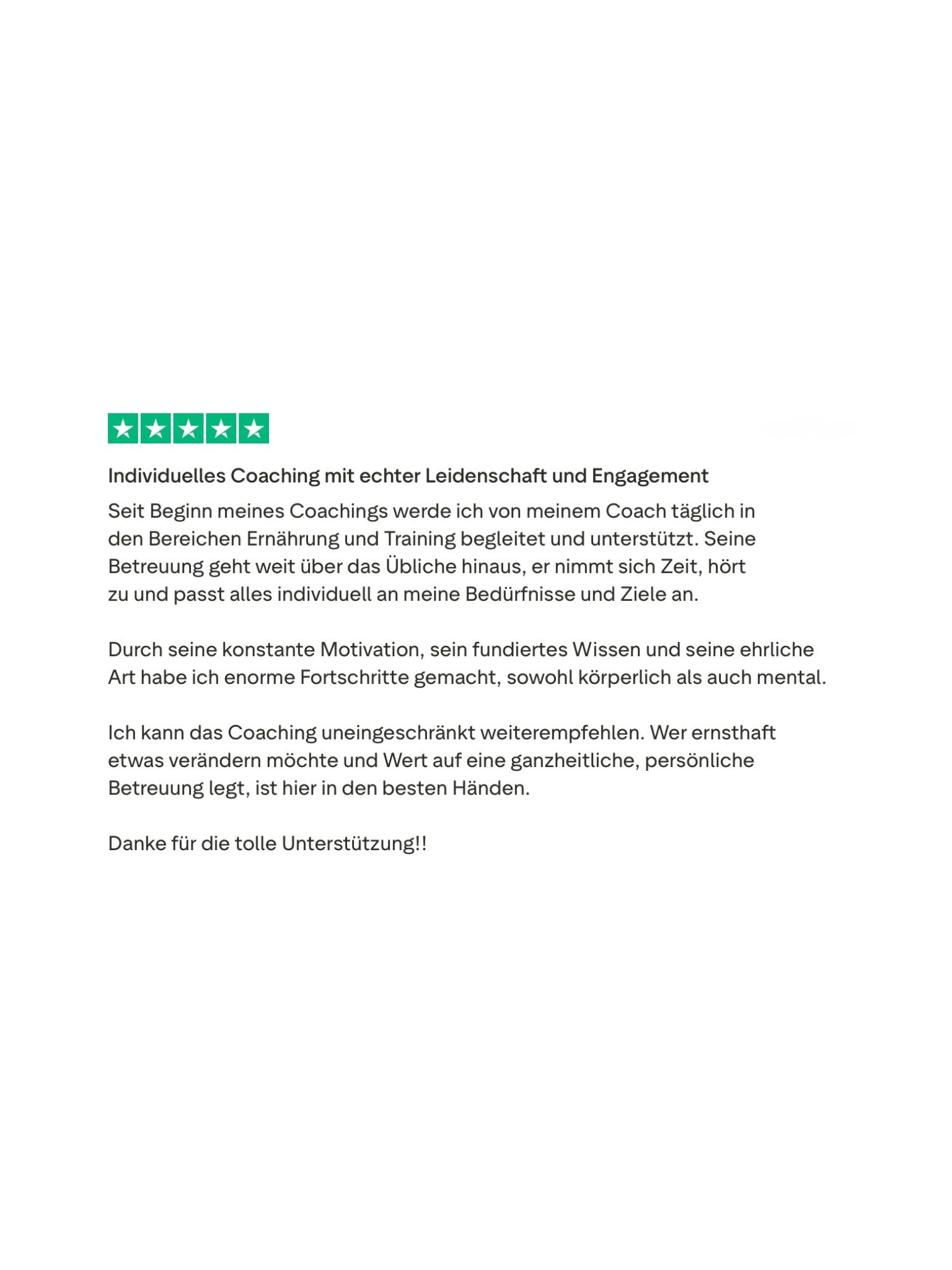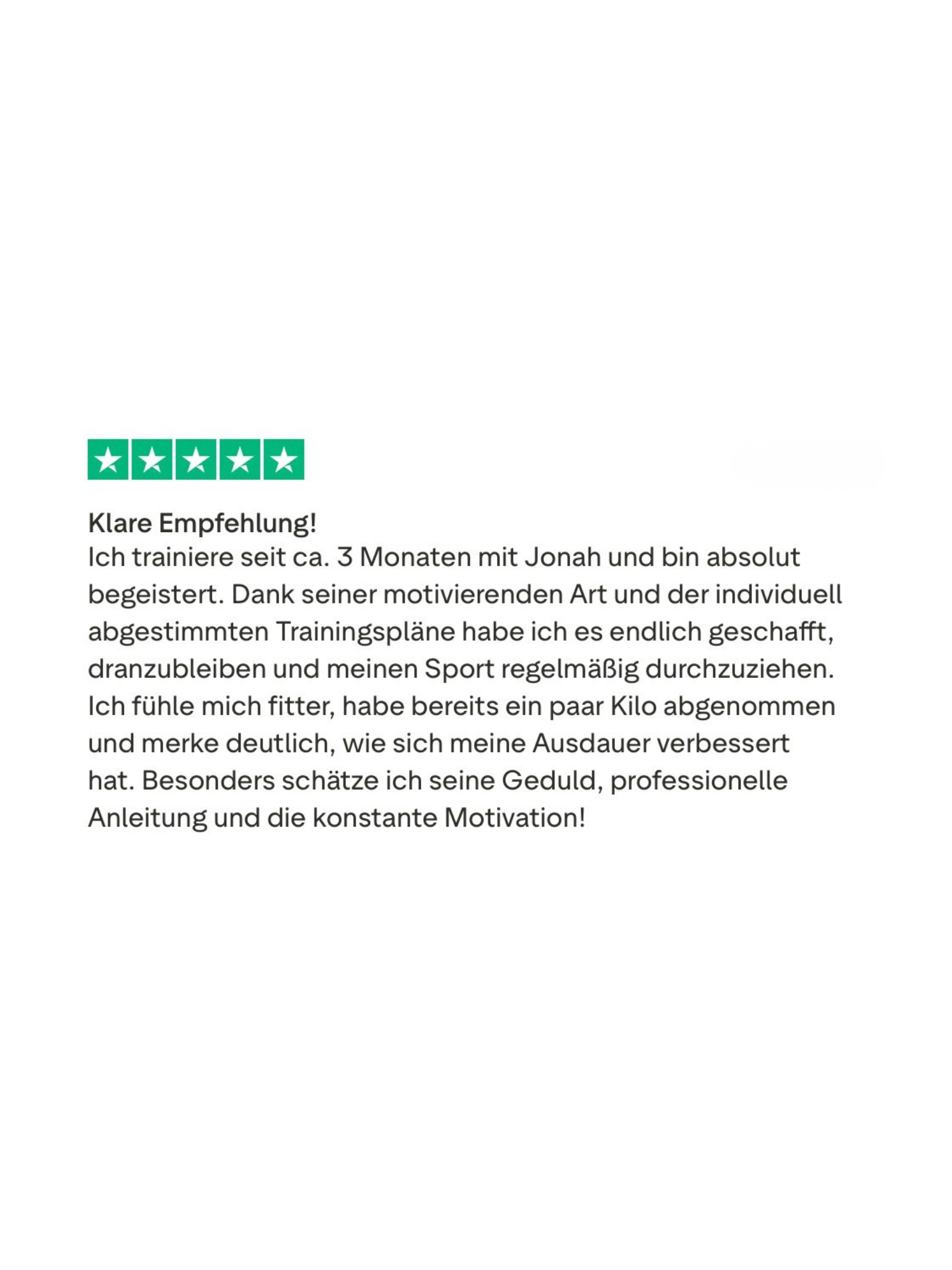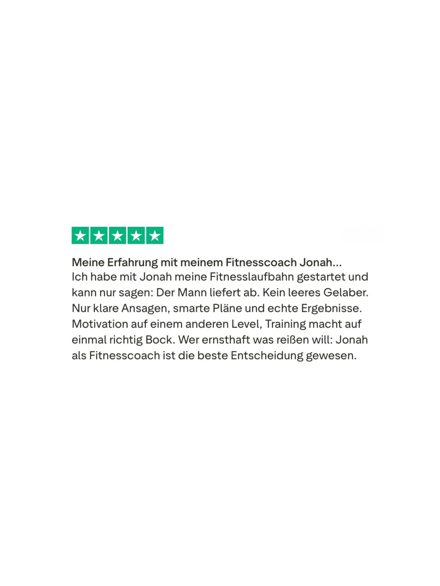 PS: Die komplett individuelle 1:1 Beratung und der maßgeschneiderte Trainingsplan sind nicht Teil der Testphase – dafür braucht es deutlich mehr Zeit und Analyse. Genau das macht später mein Coaching so effektiv.