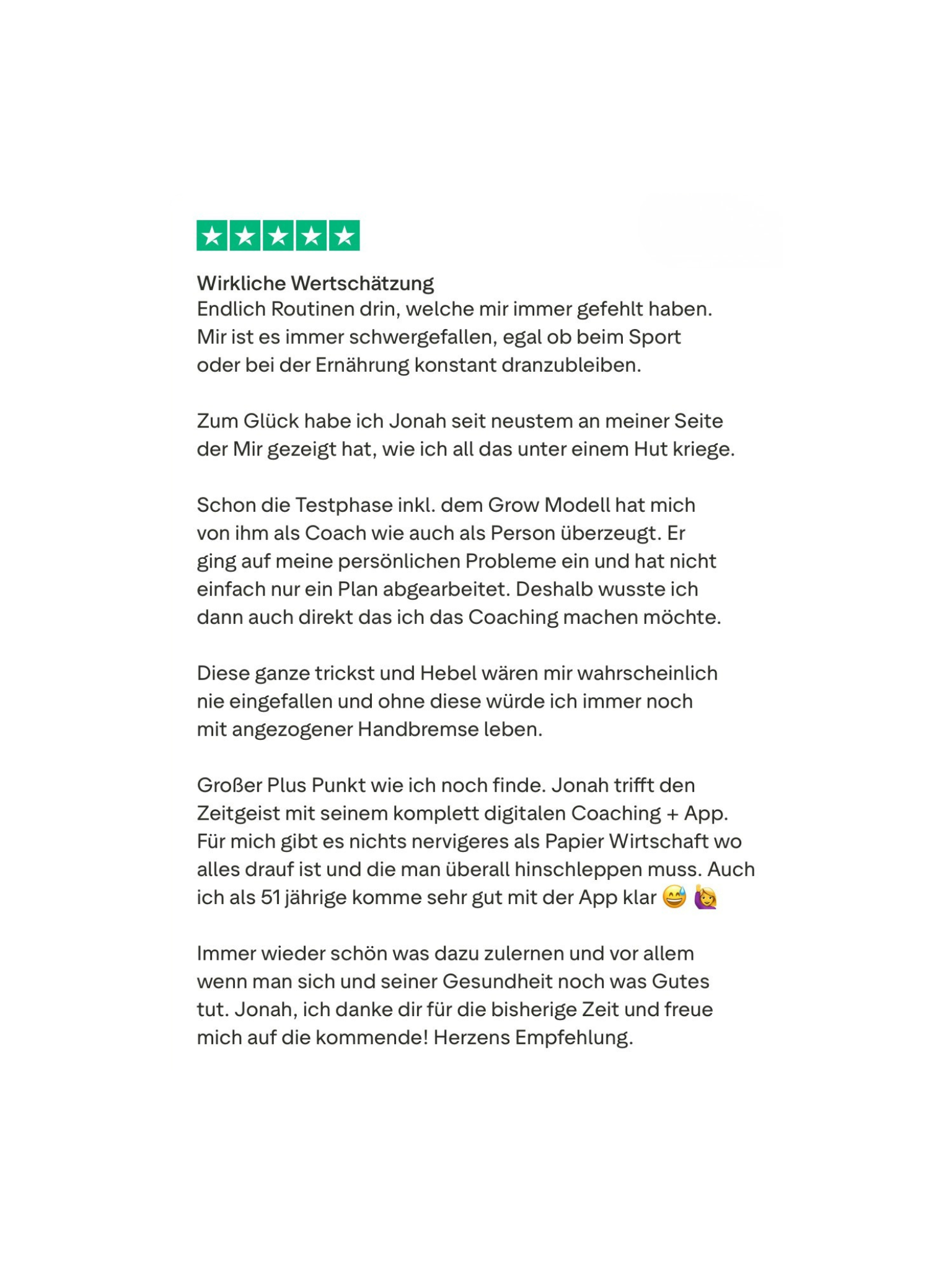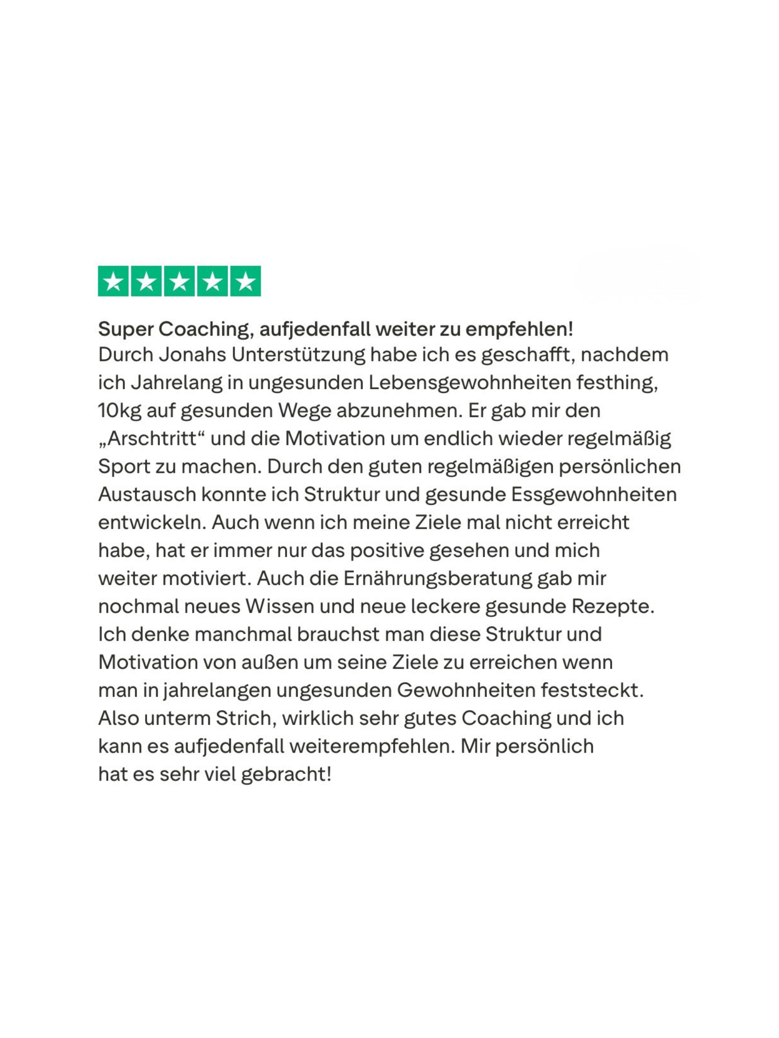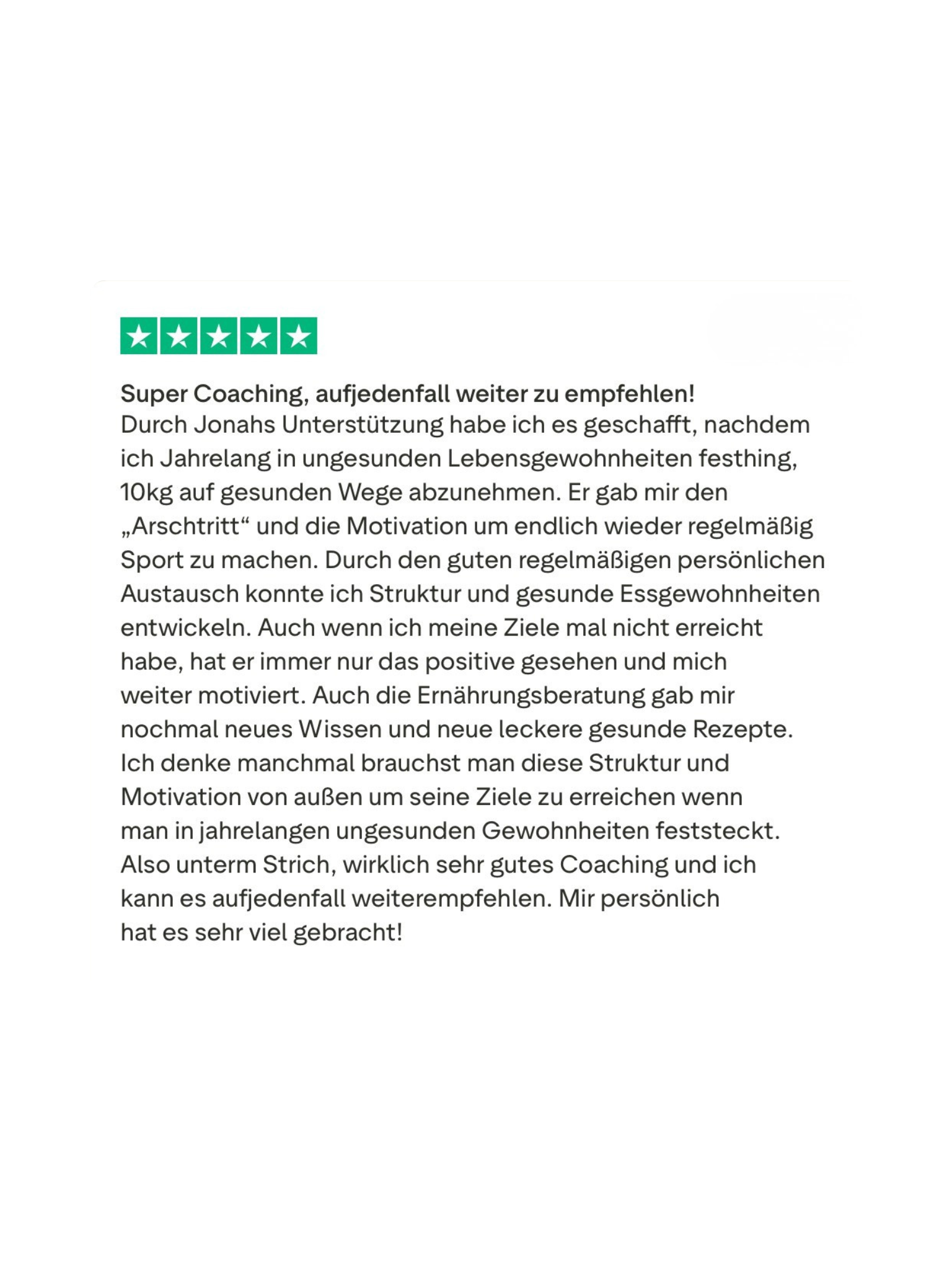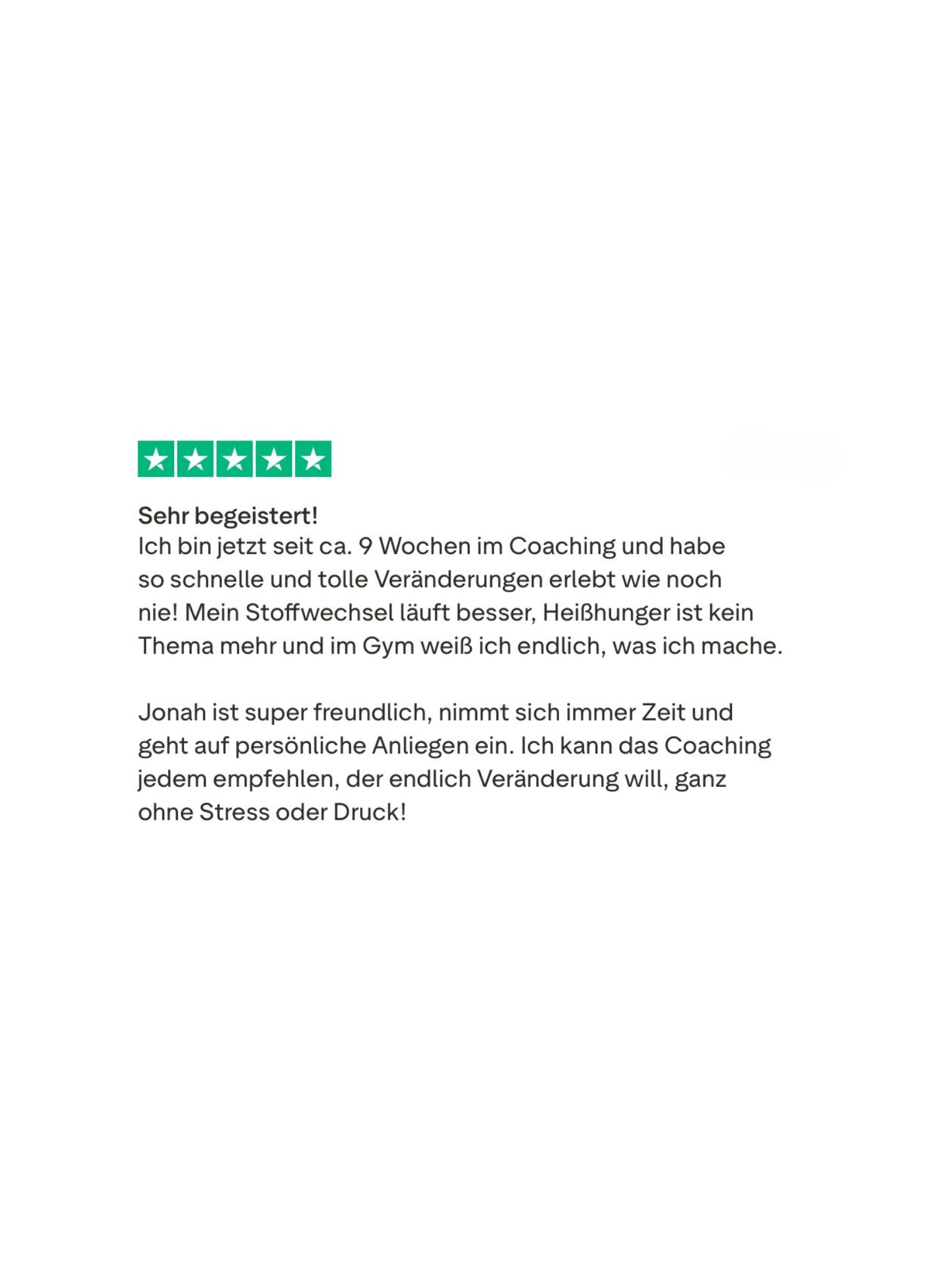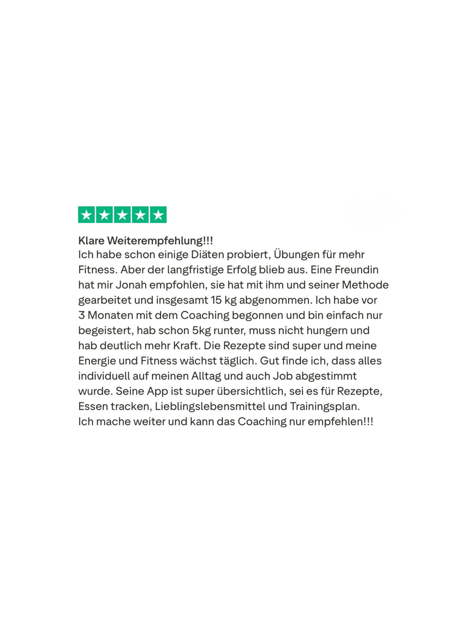 PS: Die komplett individuelle 1:1 Beratung und der maßgeschneiderte Trainingsplan sind nicht Teil der Testphase – dafür braucht es deutlich mehr Zeit und Analyse. Genau das macht später mein Coaching so effektiv.